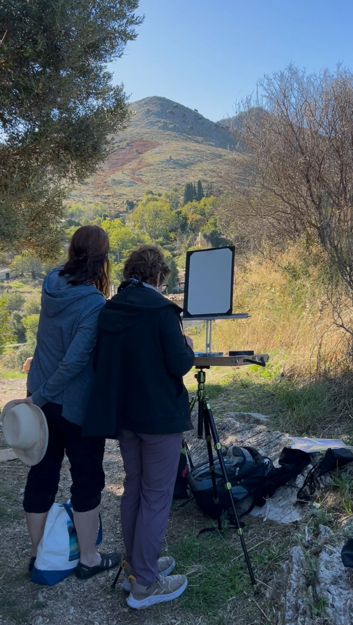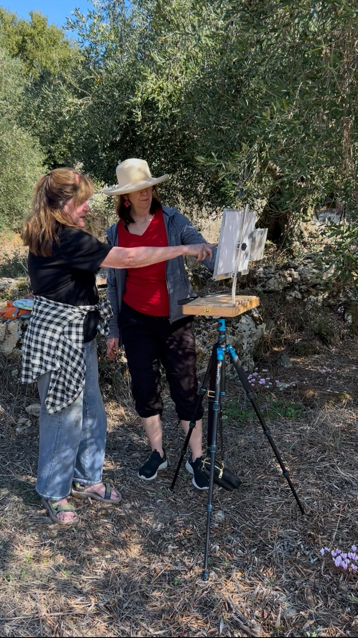 “Gail Sibley is just a fantastic instructor. She helped each of us identify our core goals - encouraging us to “be brave” - as we were challenged by unknown landscapes daily that were all jaw-dropping beautiful. The small group size allowed Gail to give each of us ample times of dialogue and guidance at our easels. Each carefully curated (by Kate) location provided many options of view point to choose from, along with a beautiful quiet to allow us to focus on our painting. Each spot chosen had its own beauty - but for me, the looking out at the beautiful waters of the Ionian Sea and the colors of the sun-drenched rocks were my favorite. Thank you, Gail and Kate.”